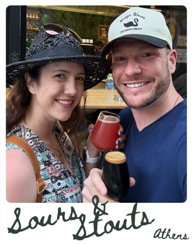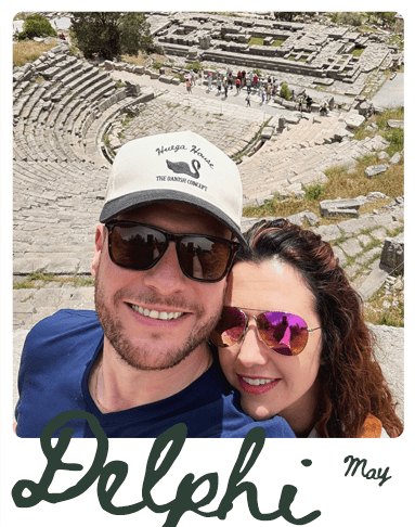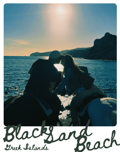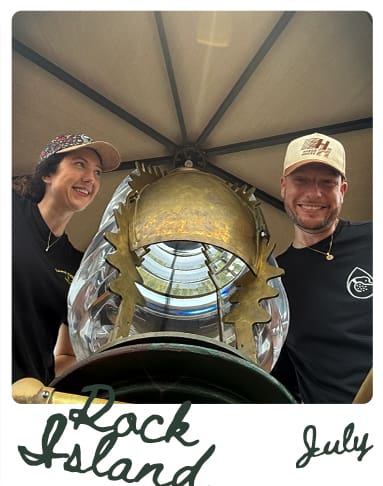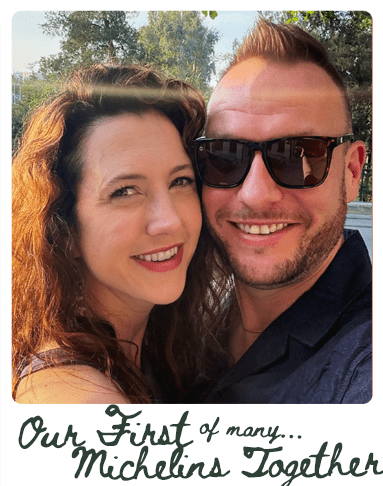 The timeline on the back of the save-the-dates is a short roadmap of our story. We met in 2018 through mutual friends and did group outings in said friend group (with our significant others at the time), including July Fourth at Sean’s old house. Sami had her beautiful daughter, Hazel, in 2021 (the baby illustration) and we lost touch for the next 3+ years, as Sean continued exploring the world (the plane illustration).
